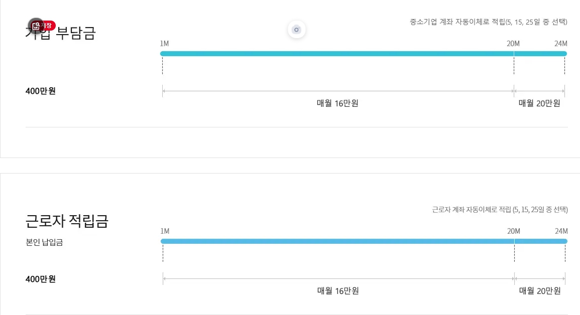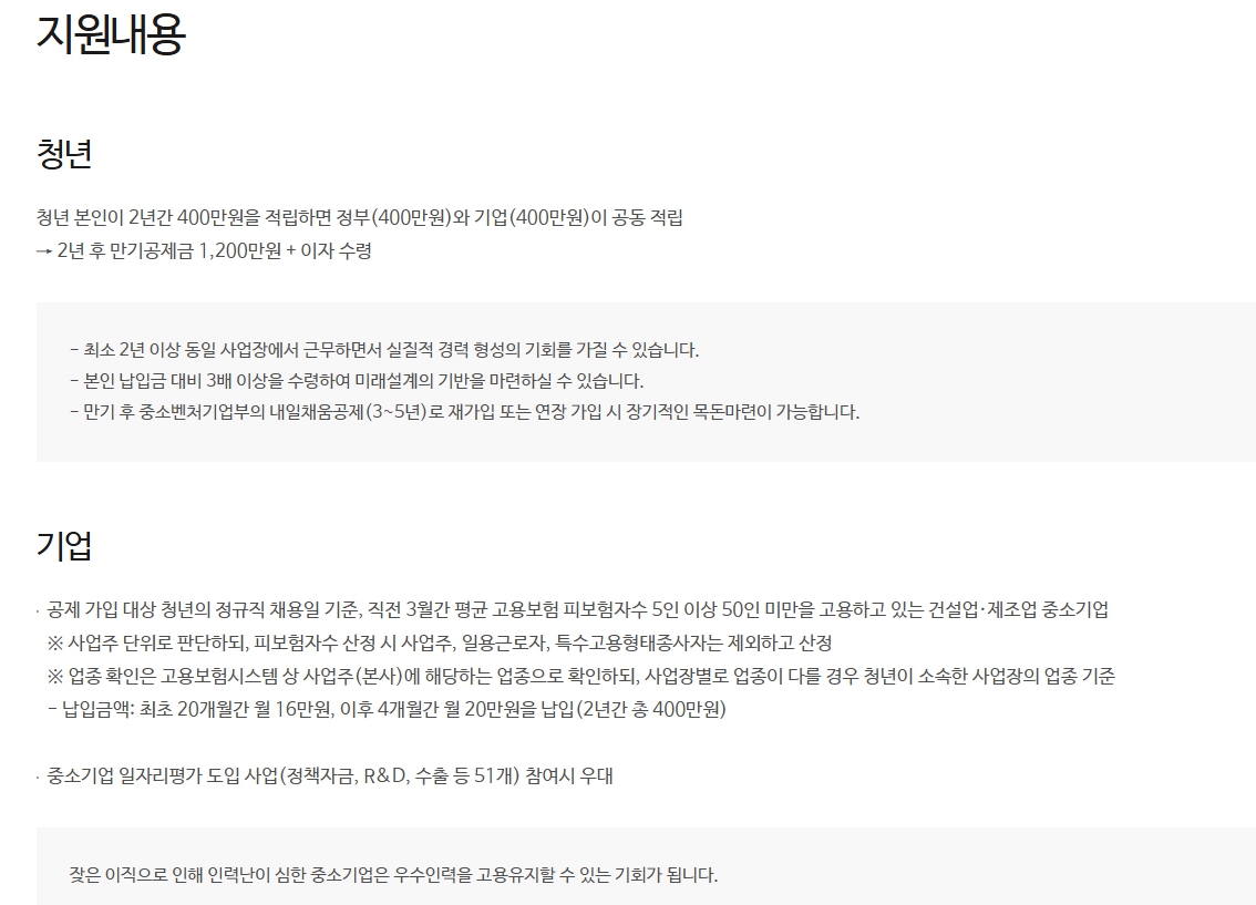 이 제도는 청년근로자·기업·정부가 함께 적립해 5년 근속 시 3천만원 자산형성 구조였고, 청년은 5년간 720만원, 기업은 1,200만원, 정부는 3년간 1,080만원을 적립하는 방식이었습니다. 다만 이 역시 공식 페이지에 ‘22년 사업 일몰로 현재 가입불가라고 안내돼 있습니다.