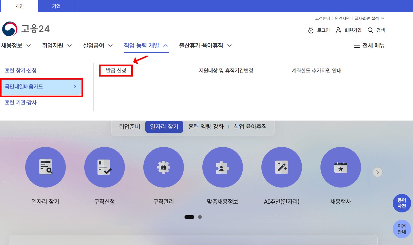 3. 국민내일배움카드 발급 신청